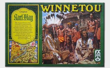 Inspiré par le célèbre roman de l'écrivain allemand Karl May, intitulé en français Le Trésor du Lac d'Argent, ce jeu a été conçu pour immerger les joueurs dans l'univers du Far West. Publié par l'éditeur Schmidt Spiele en 1988, il propose une mécanique de parcours et de collecte de jetons. Les participants doivent traverser des territoires périlleux pour atteindre le lac et s'emparer du trésor avant leurs adversaires, tout en retrouvant l'atmosphère des récits d'aventures classiques où se mêlent courage, amitié et exploration.