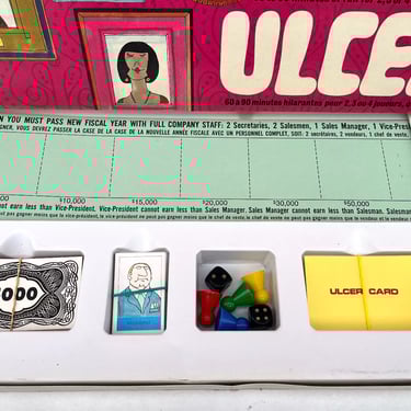 Le jeu de société Ulcers, sorti en 1969, est un jeu plutôt unique et controversé dans l'histoire des jeux de société. Créé par Milton Bradley, il a été conçu pour simuler le stress et les tensions d'une vie moderne, particulièrement en lien avec la pression au travail et les effets du stress sur la santé.